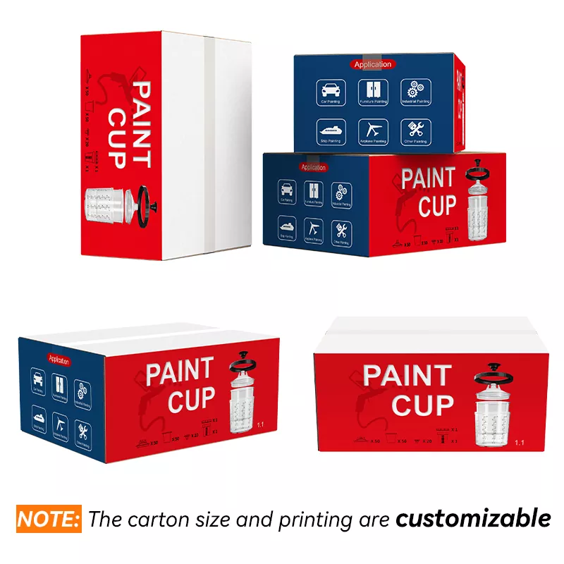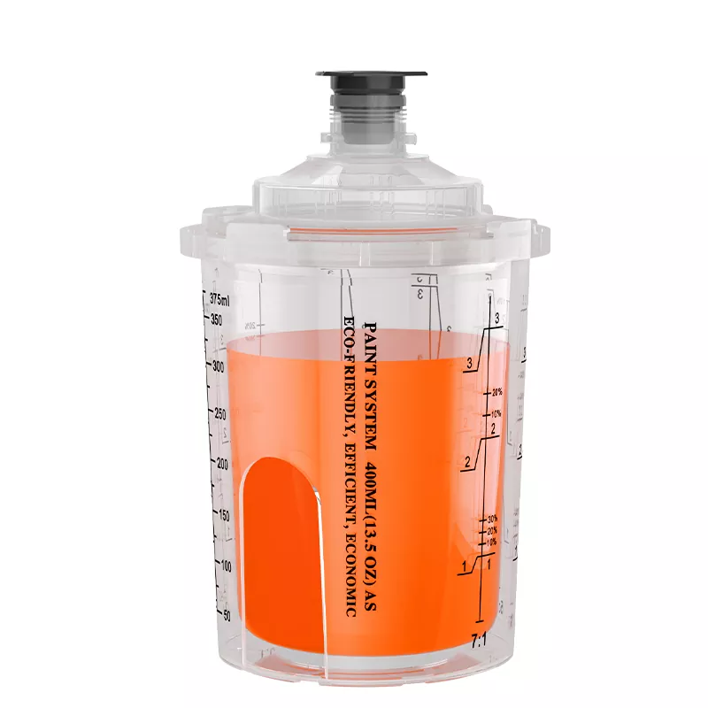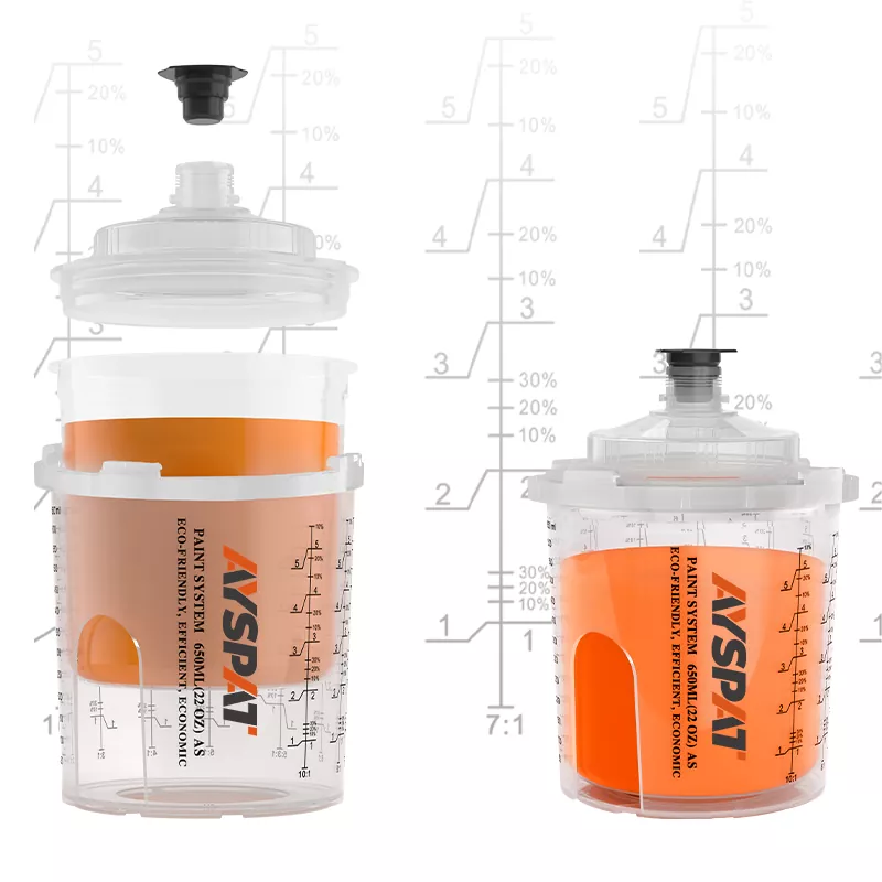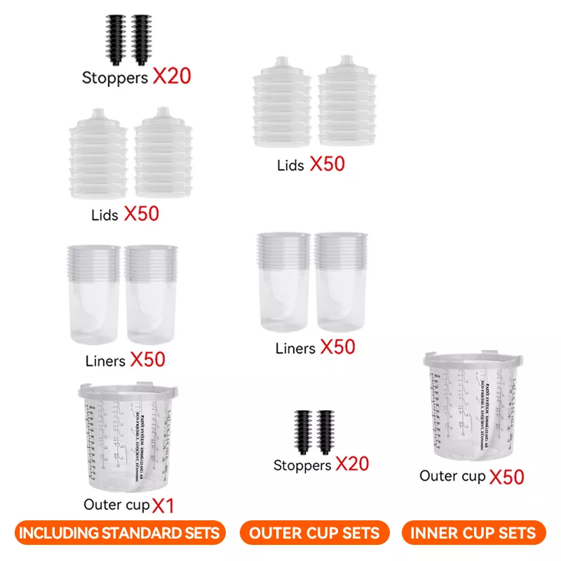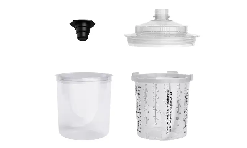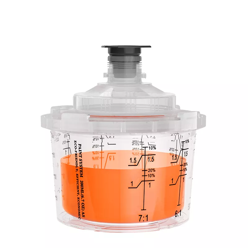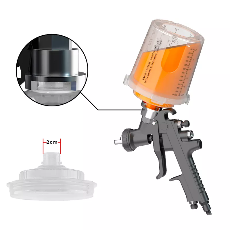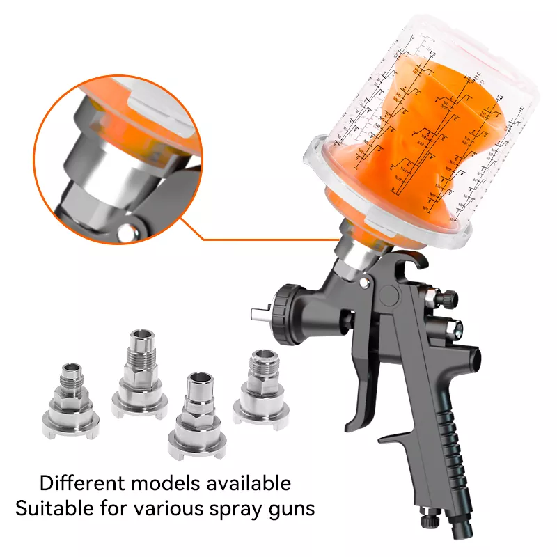 Бір рет пайдаланылатын бүріккіш стаканның біріктірілген шкафының дизайны адаптерді мықтап байланыстырады, бұл бүріккіш шыныаяқты және бүріккіш пистолет арасындағы байланысты едәуір жақсартады. Сонымен бірге, стаканның үлкейтілген диаметрі бояуды тезірек ағызады, бұл бүрку әсерін едәуір жақсартады.