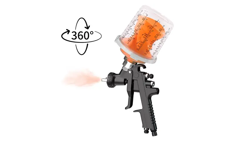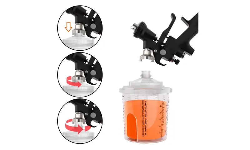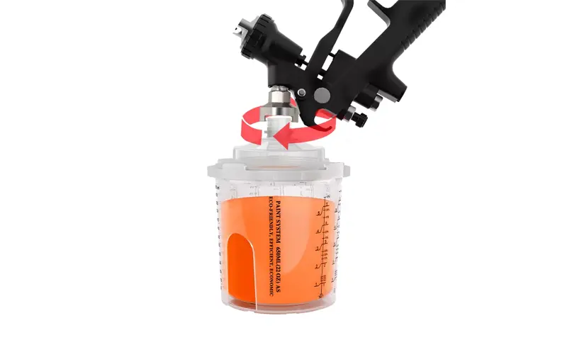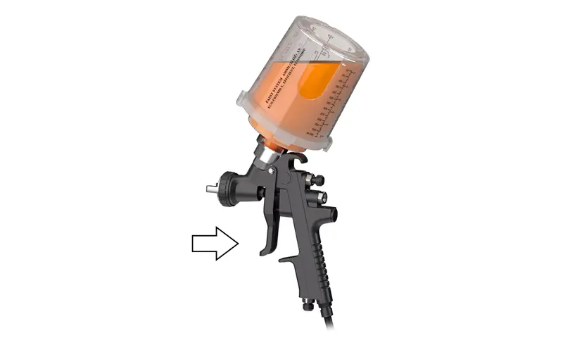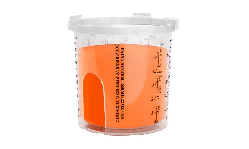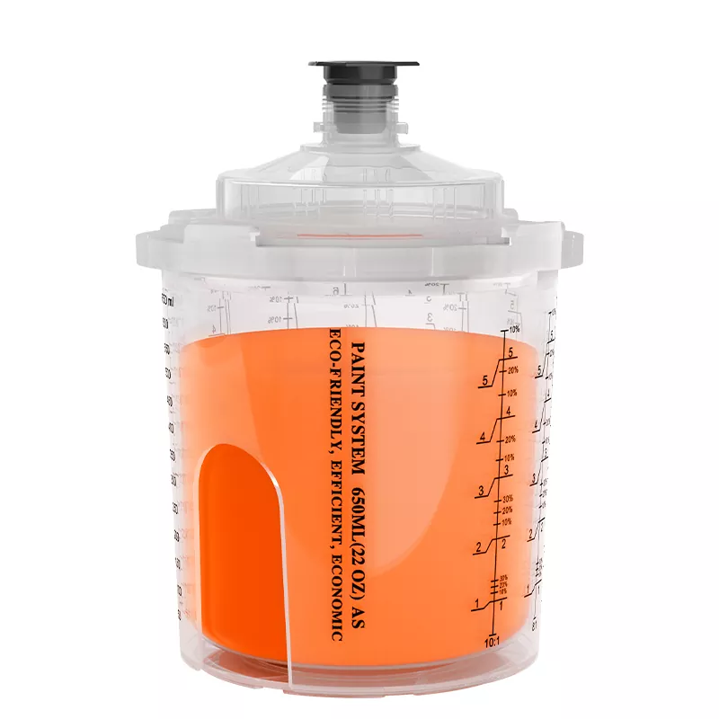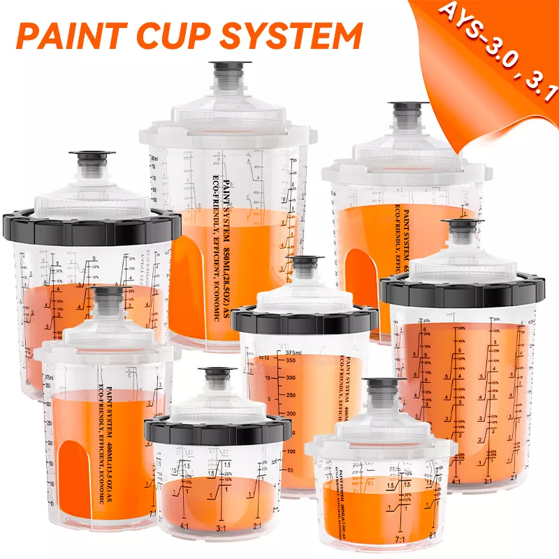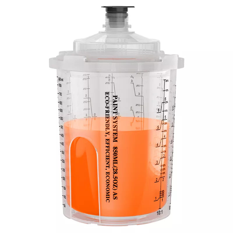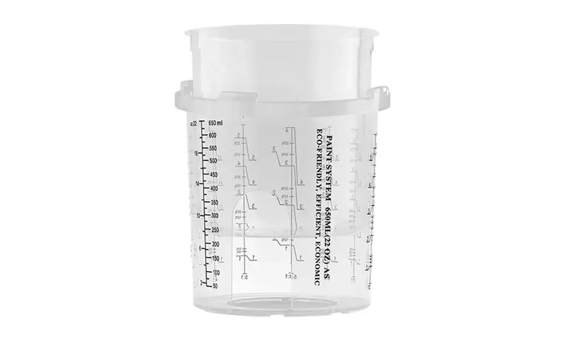 Бір рет пайдаланылатын бүріккіш стаканның біріктірілген шкафының дизайны адаптерді мықтап байланыстырады, бұл бүріккіш шыныаяқты және бүріккіш пистолет арасындағы байланысты едәуір жақсартады. Сонымен бірге, стаканның үлкейтілген диаметрі бояуды тезірек ағызады, бұл бүрку әсерін едәуір жақсартады.