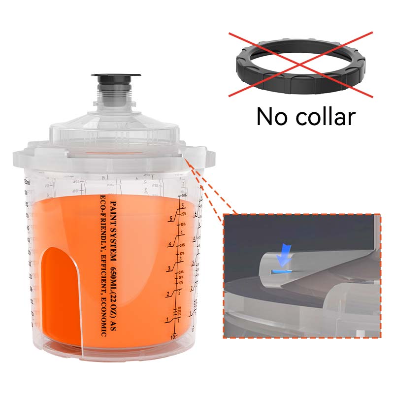 Тостаған және қақпақтың арасындағы тығыз байланыс құрайтын жақа бұрыннан бері бір реттік бүріккіш кубок жүйелерінде маңызды компонент болды. Кескіндеме сессиялары кезінде суретшілер көбінесе жыртып немесе зақымдайды, бір рет пайдаланылатын бүріккіш шыныаяқтың дұрыстығын дұрыс жұмыс істеуіне жол бермейді, айтарлықтай қиындықтар туғызады.